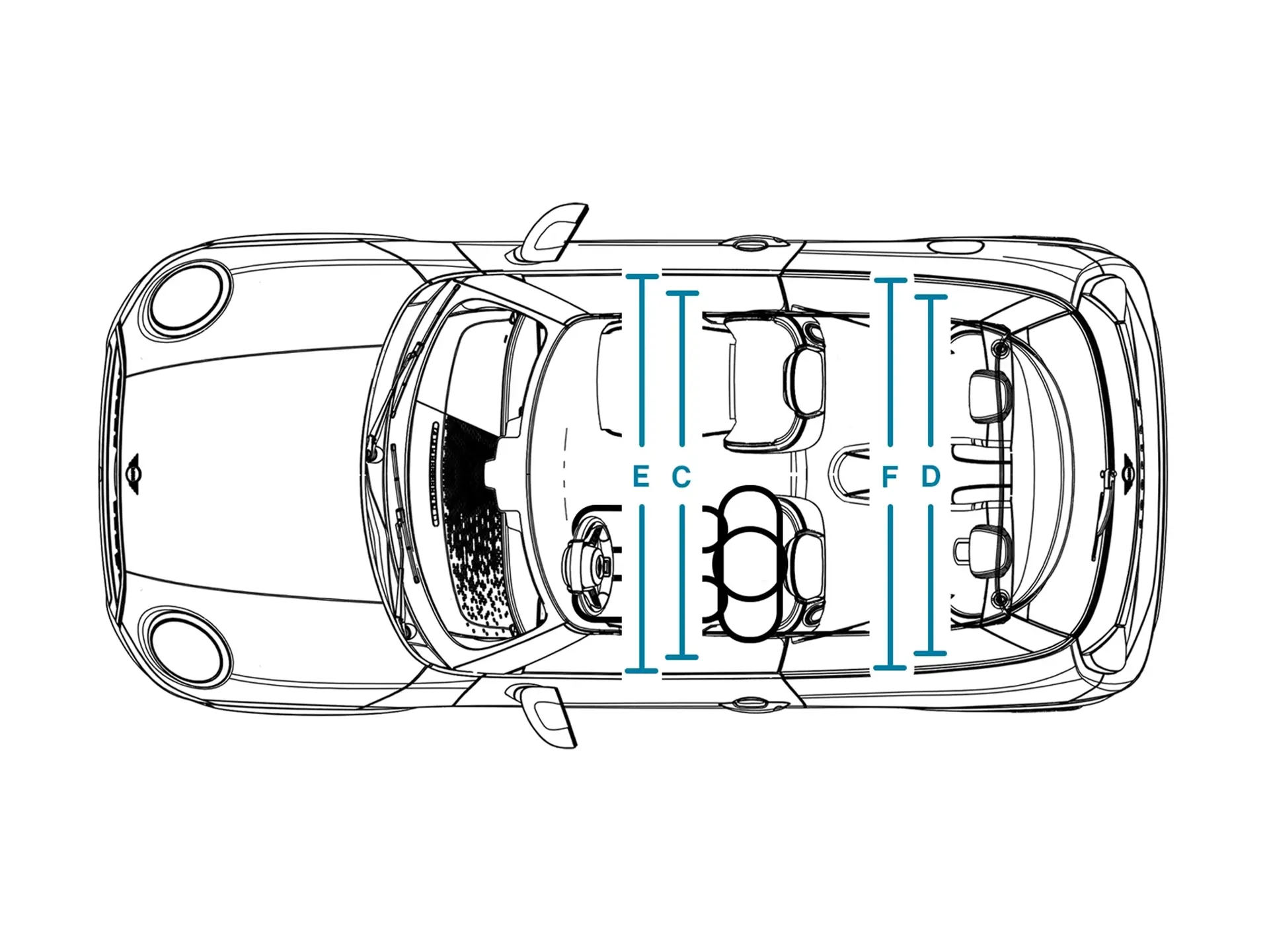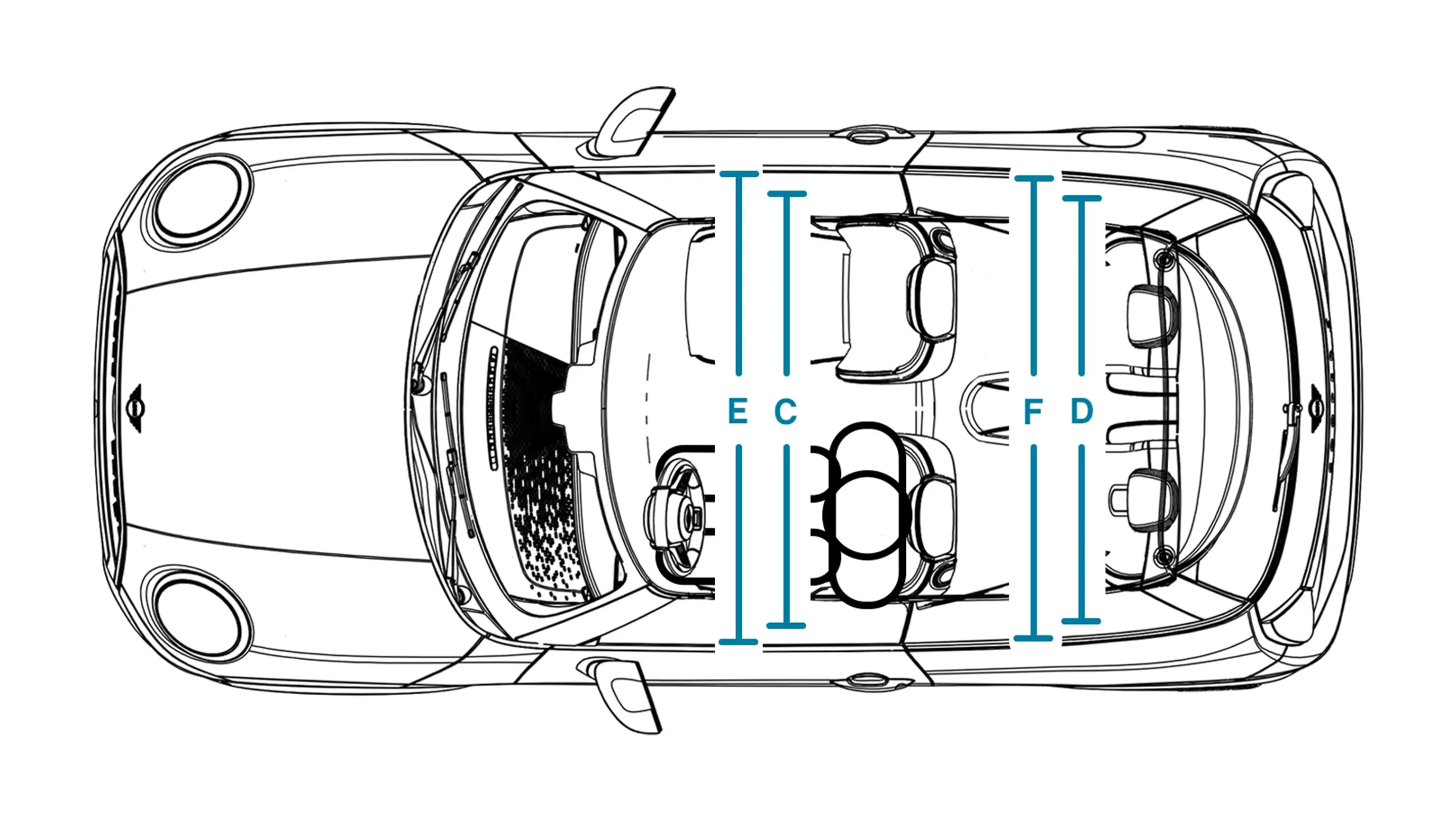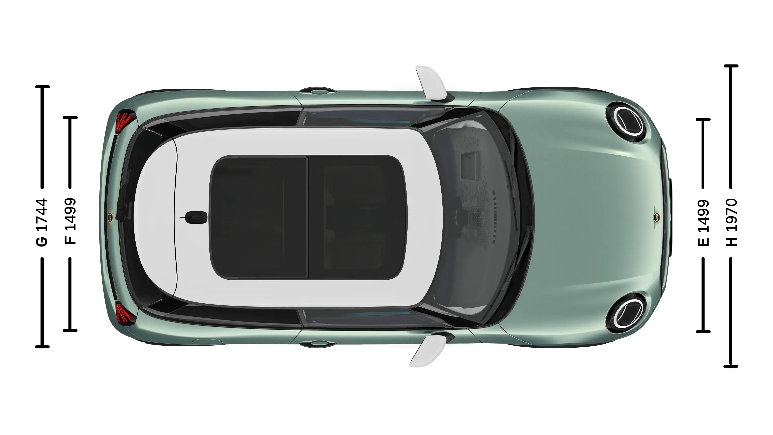 | (G) Spaţiu pentru zona capului – plafon panoramic din sticlă, faţă | 973 mm |